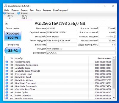 256Gb SSD M.2 AGI AI198 AGI256G16AI198 NVMe (чтение до 1936 МБ/с, запись до 1217 МБ/с) Новый
